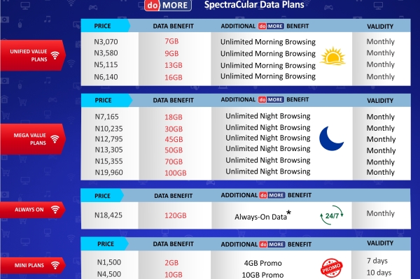 Pioneer 4G LTE Internet Service provider, Spectranet 4G LTE has unveiled a unique set of data plans tagged “Do More SpectracularData plans” to address the changing data requirements of its customers as a result of the new normal of Working from Home (WFH).