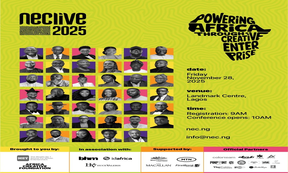 Nigerian Entertainment Conference (NECLive), West Africa’s largest creative industry gathering, will hold its 2025 edition in Lagos on Friday, Nov. 28, under the theme “Powering Africa Through Creative Enterprise.”